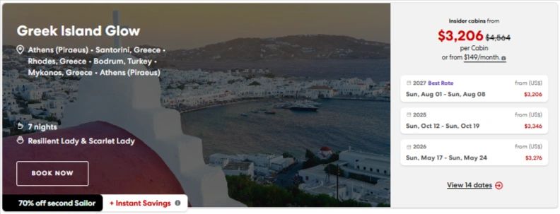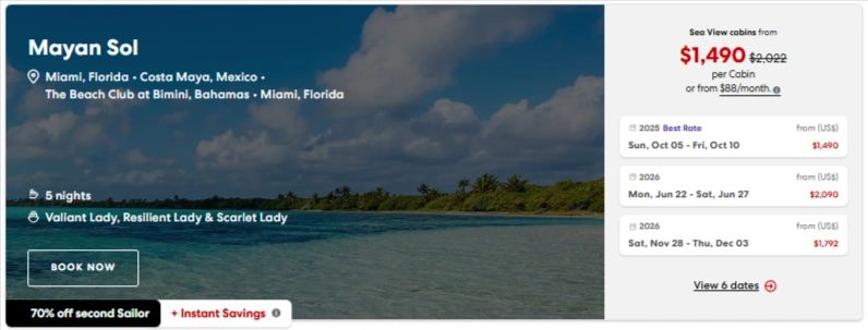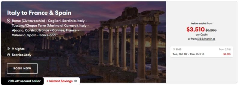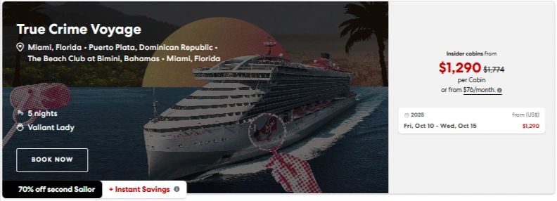 Virgin Voyages - 70% off Second Sailor + Up to $600 Instant Savings